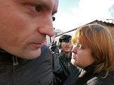Лидер движения "Левый фронт" Сергей Удальцов (слева) и адвокат Виолетта Волкова (справа) у здания ФСБ России на Лубянской площади, где проходит акция оппозиции в формате одиночных пикетов "От Лубянки до Лефортово. Мы против репрессий и пыток".