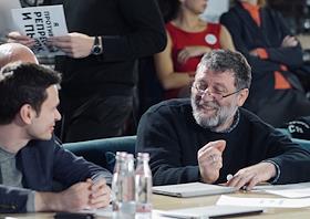 Писатель Дмитрий Быков на первом заседании Координационного совета оппозиции в кафе DOME.