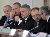 Слева направо: директор ФГБУ "Национальный исследовательский центр "Курчатовский институт", член-корреспондент Российской академии наук Михаил Ковальчук, ректор Санкт-Петербургского государственного университета Николай Кропачев и помощник Министра здравоохранения, академик Российской академии наук Сергей Лукьянов перед началом заседания Совета при президенте России по науке и образованию. Заседание прошло в Ново-Огарево.