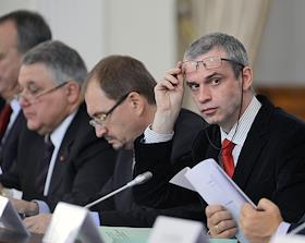 Помощник президента России Андрей Фурсенко (в центре) перед началом заседания Совета при президенте России по науке и образованию. Заседание прошло в Ново-Огарево.
