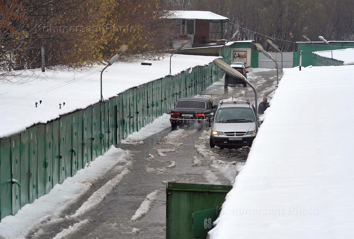 Жанровая фотография. Автомобили на территории гаражного комплекса.