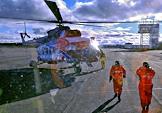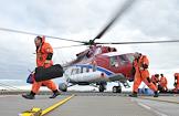 Вертолет во время отправления из города Ноглики на платформу по добыче газа "Лунская-А".
