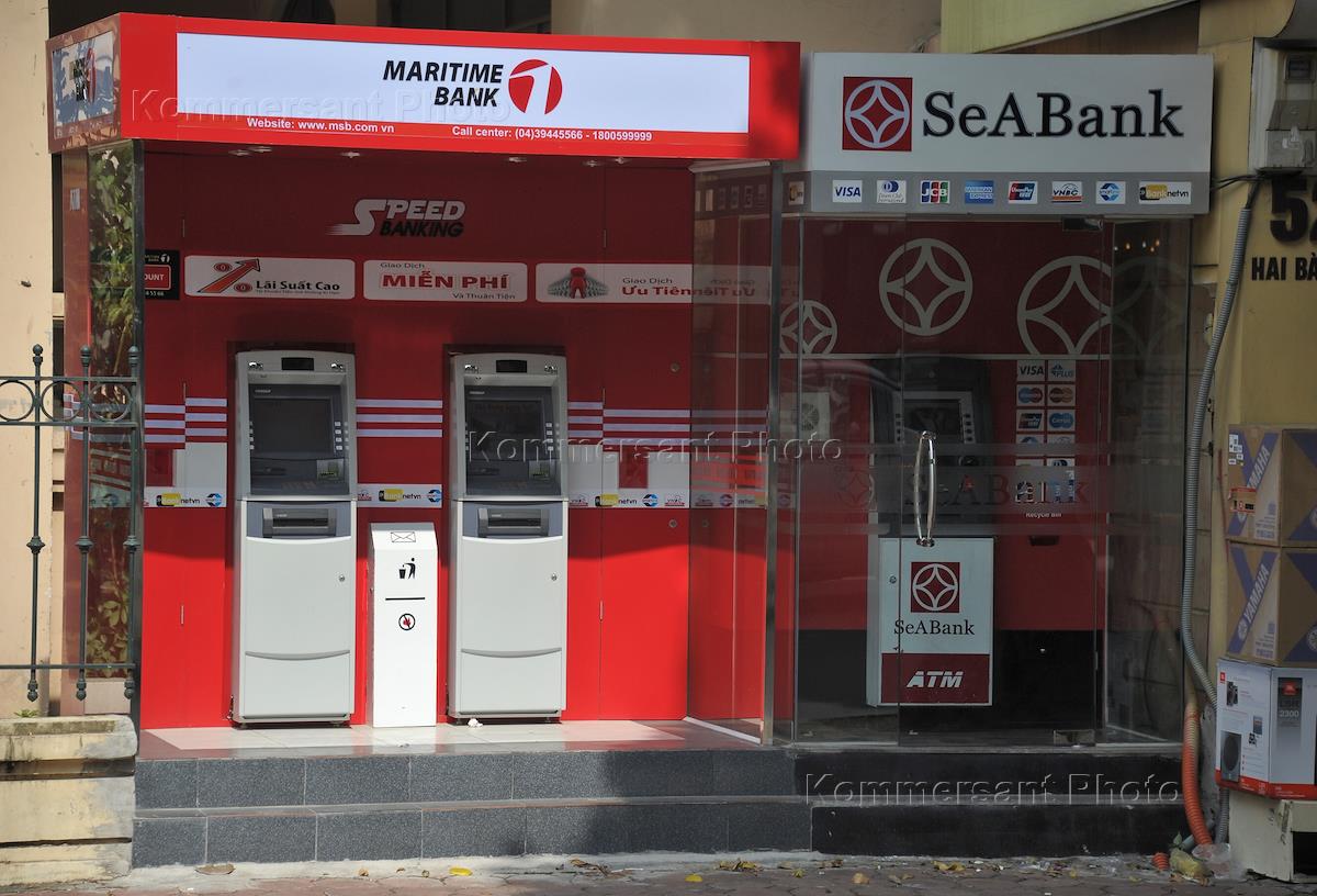 Виды города Ханой. Банкоматы и терминалы оплаты на улице города.
