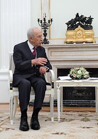 Президент Израиля Шимон Перес во время встречи с президентом России Владимиром Путиным во время официальной встречи в Кремле.