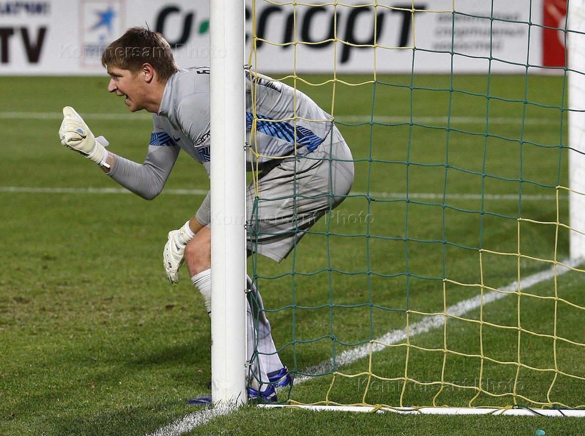 Чемпионат России по футболу. Вратарь Александр Беленов во время матча между командами "Кубань" (Краснодар) - ЦСКА (Москва). Матч прошел на стадионе "Кубань".