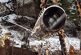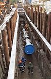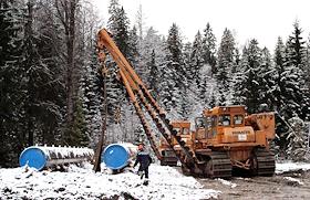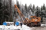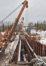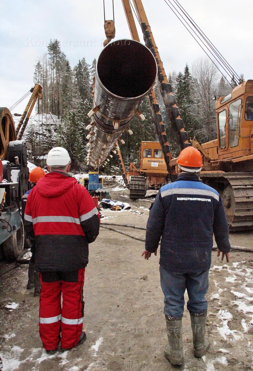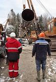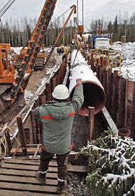 Строительство перехода через Сайменский канал на трассе второй нитки газопровода "Северный поток" (Nord Stream). Протяжка газовой трубы через тоннель под каналом.