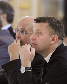 Заседание Совета при президенте России по развитию гражданского общества и правам человека. Уполномоченный по правам человека в России Владимир Лукин (слева) и председатель Совета при президенте России по развитию гражданского общества и правам человека Михаил Федотов (справа) на заседании в Кремле.