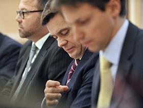 Владелец и генеральный директор ОАО "Северсталь" Алексей Мордашов (в центре) во время заседания Совета по инвестициям при председателе Государственной думы (ГД) России. Заседание прошло в Доме приемов ГД России.