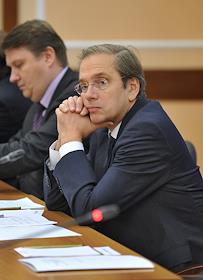 Руководитель Федеральной службы по финансовым рынкам (ФСФР) Дмитрий Панкин (справа) во время заседания Совета по инвестициям при председателе Государственной думы (ГД) России. Заседание прошло в Доме приемов ГД России.