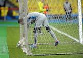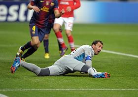 Лига чемпионов УЕФА 2012/13. Вратарь ФК "Спартак" Андрей Дикань во время матча между командами "Спартак" (Москва) и "Барселона" (Испания). Матч прошел на Большой спортивной арене (БСА) спорткомплекса "Лужники".