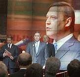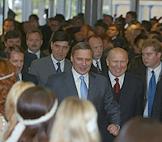 Председатель Правительства России Михаил Касьянов (в центре) и вице-мэр Москвы Валерий Шанцев (второй справа) на церемонии открытия российской агропромышленной выставки "Золотая осень 2002" во Всероссийском выставочном центре (ВВЦ). Выставка проводится в рамках Агропромышленной недели, приуроченной к Дню работника сельского хозяйства и перерабатывающей промышленности.
