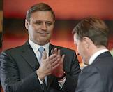 Председатель Правительства России Михаил Касьянов (слева) министр сельского хозяйства России Алексей Гордеев (справа) на церемонии открытия российской агропромышленной выставки "Золотая осень 2002" во Всероссийском выставочном центре (ВВЦ). Выставка проводится в рамках Агропромышленной недели, приуроченной к Дню работника сельского хозяйства и перерабатывающей промышленности.