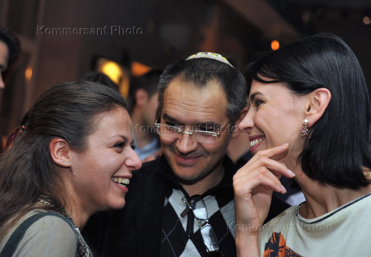 Стартап-менеджер, журналист, медиадиректор SUP Media Антон Носик (в центре) и глава продюсерской компании "Buro 17" Александрина Маркво (справа) на закрытой вечеринке, посвященной новому супертренду - Буктрейлер. Вечеринка прошла в киноклубе DOME.