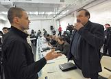 Второе заседание Координационного совета оппозиции. Член комитета Государственной думы по физической культуре, спорту и делам молодежи Дмитрий Гудков (слева) в помещении фотогалереи им.братьев Люмьер на "Красном Октябре".