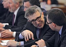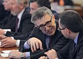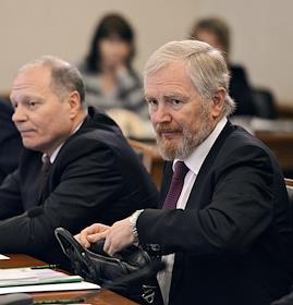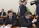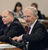 Директор Государственной фельдъегерской службы России Валерий Тихонов (слева) и заместитель министра финансов России Сергей Сторчак (справа) на заседании Организационного комитета по подготовке и обеспечению председательства России в "Группе двадцати в 2013 году.