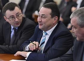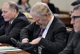 Директор Государственной фельдъегерской службы России Валерий Тихонов (слева) и заместитель министра финансов России Сергей Сторчак (в центре) на заседании Организационного комитета по подготовке и обеспечению председательства России в "Группе двадцати в 2013 году.