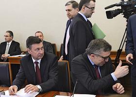Заместитель министра финансов России Сергей Сторчак (слева) и статс-секретарь - заместитель директора Службы внешней разведки России дмитрий Фадеев (справа) на заседании Организационного комитета по подготовке и обеспечению председательства России в "Группе двадцати в 2013 году.