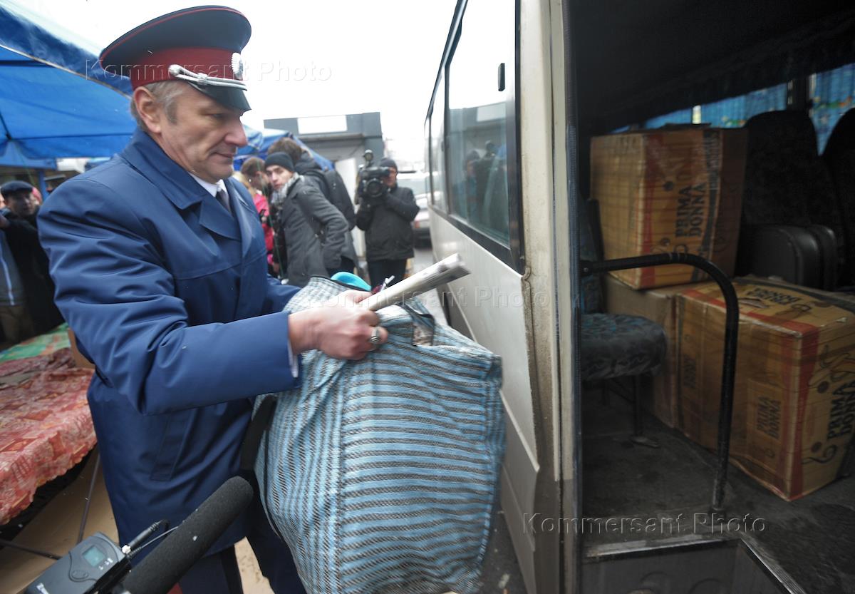 Member of the Cossack squads during the patrol on the Belarusian station square.