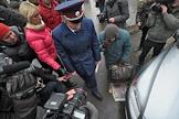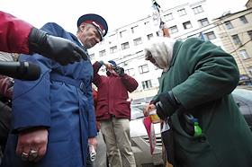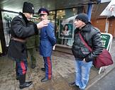 Участники казачьей дружины во время патрулирования на площади у Белорусского вокзала.