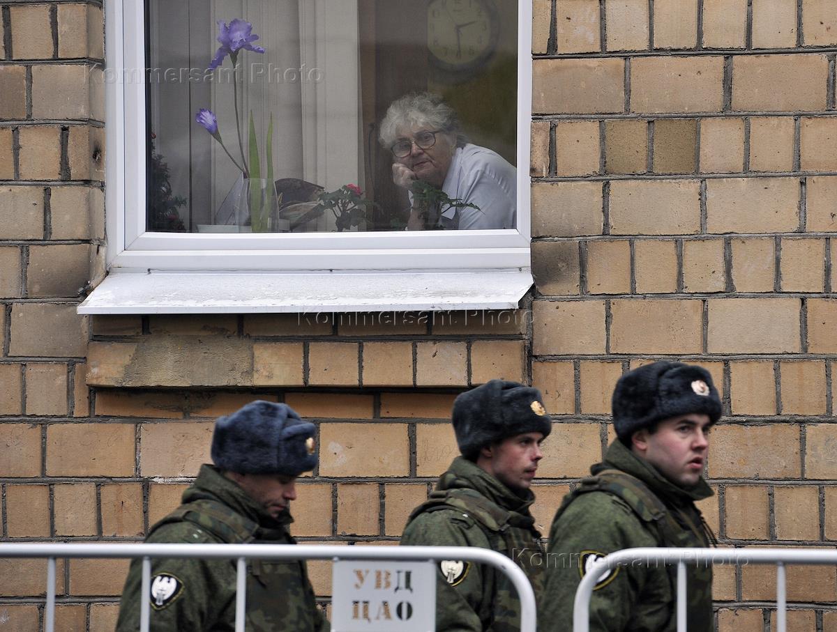 Law enforcement officers in front of the Zamoskvoretsky court where Rasul Mirzaev's verdict takes place.