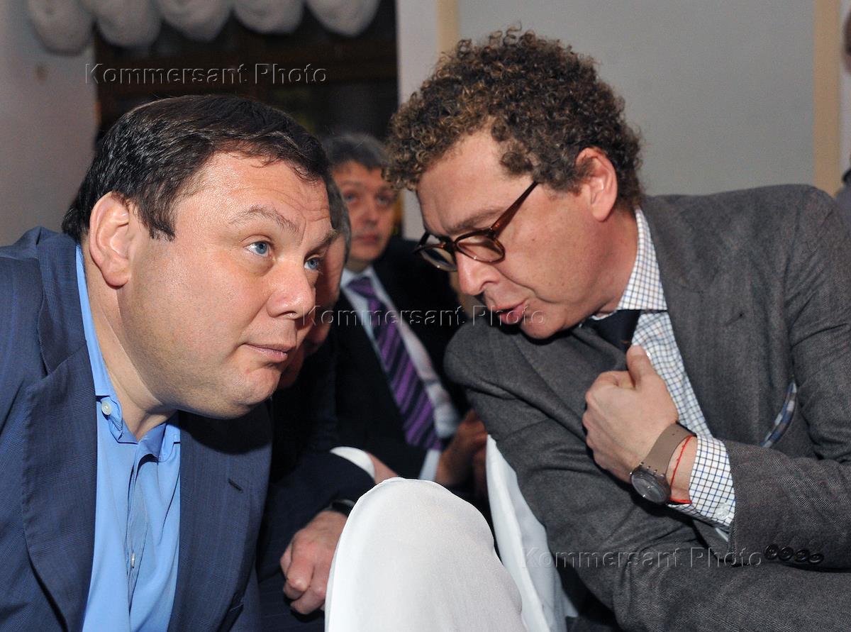 Председатель Наблюдательного совета Консорциума "Альфа-групп" Михаил Фридман (слева) и предприниматель Александр Мамут (справа) на торжественной церемонии награждения лауреатов национальной литературной премии "Большая книга". Церемония прошла в Доме Пашкова.
