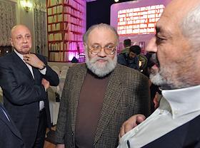 Слева направо: Профессор МГИМО МИД России Юрий Кобаладзе, председатель Центральной избирательной комиссии России Владимир Чуров и вице-президент Компании развития общественных связей (КРОС) Виталий Дымарский на торжественной церемонии награждения лауреатов национальной литературной премии "Большая книга". Церемония прошла в Доме Пашкова.