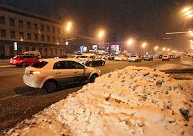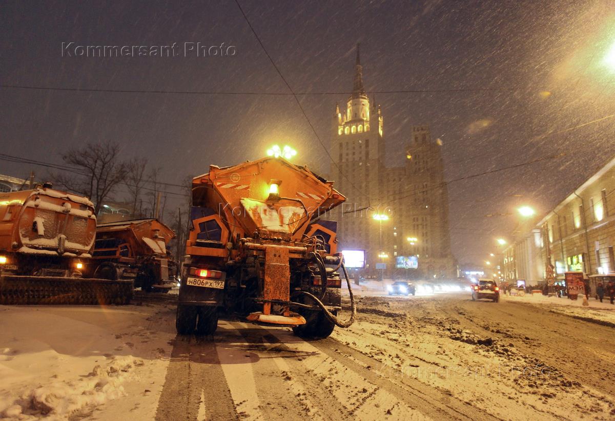 Уборка снега на улицах Москвы.