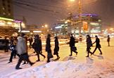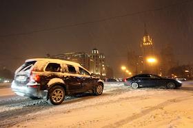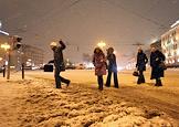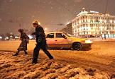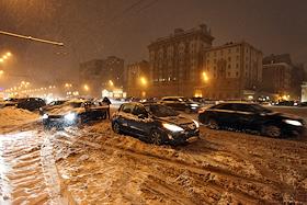 Снегопад на улицах Москвы.