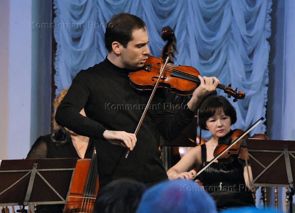 Закрытый концерт и торжественный прием, посвященный проекту известного скрипача Дмитрия Когана "Пять великих скрипок" в Доме Пашкова. Скрипач Дмитрий Коган во время концерта.