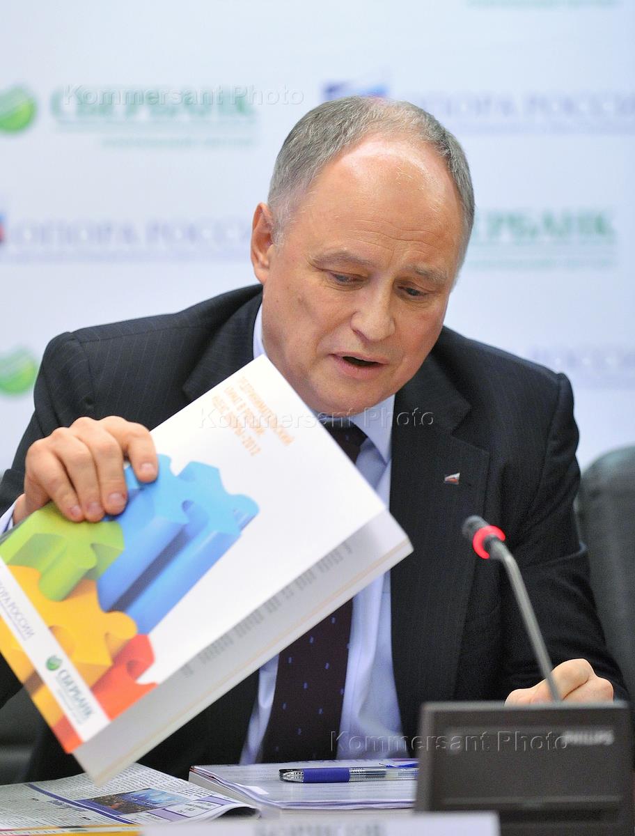 Президент Общероссийской общественной организации малого и среднего предпринимательства "ОПОРА РОССИИ" Сергей Борисов на презентации ежегодного исследовательского проекта "ОПОРЫ России" "Предпринимательский климат в России: Индекс ОПОРЫ-2012". Презентация прошла в деловом центре "Александр-Хаус".