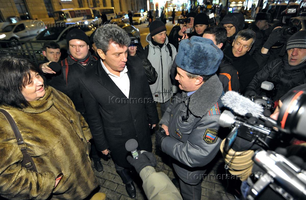 Cопредседатель оппозиционной Партии народной свободы (ПАРНАС) Борис Немцов во время акции оппозиции "Марш несогласных", посвященной годовщине начала протестных акций. Акция прошла на Чистопрудном бульваре.