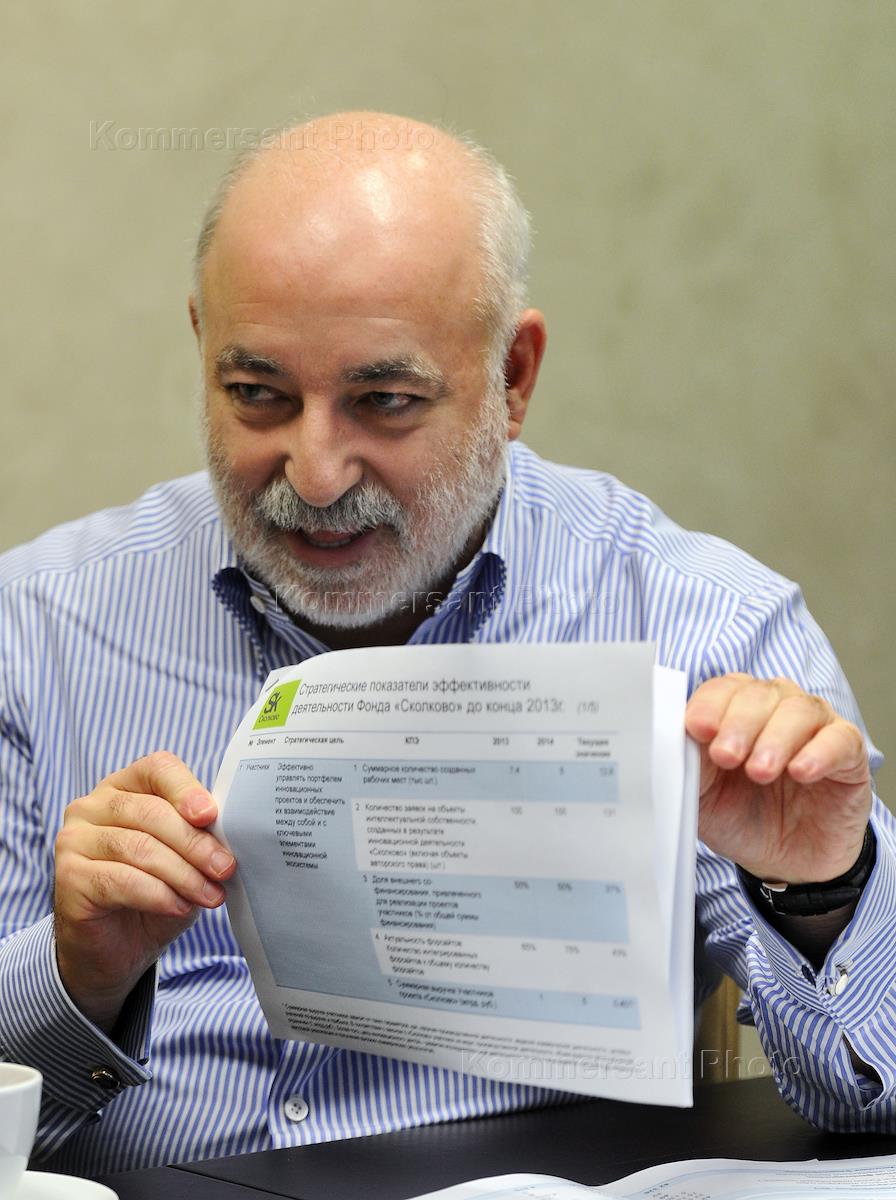 Совладелец группы "Ренова", президент фонда "Сколково" Виктор Вексельберг во время интервью в ЦМТ.