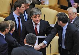 Заместитель председателя комитета Государственной думы России по конституционному законодательству и государственному строительству Ризван Курбанов (в центре) на заседании Госдумы.