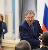 Первый заместитель руководителя администрации президента России Вячеслав Володин на заседании совета законодателей России при Федеральном Собрании России "О задачах законодательных (представительных) органов государственной власти по достижению стратегических целей социально-экономического развития РФ". Заседание прошло в Кремле.