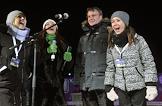 Церемония открытия благотворительного проекта – "Ярмарка Добрых Дел от Сбербанка". Слева направо: актриса Дина Корзун, актриса Екатерина Гусева, президент "Сбербанка России" Герман Греф, актриса Чулпан Хаматова на площади Поклонной горы.