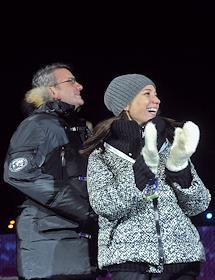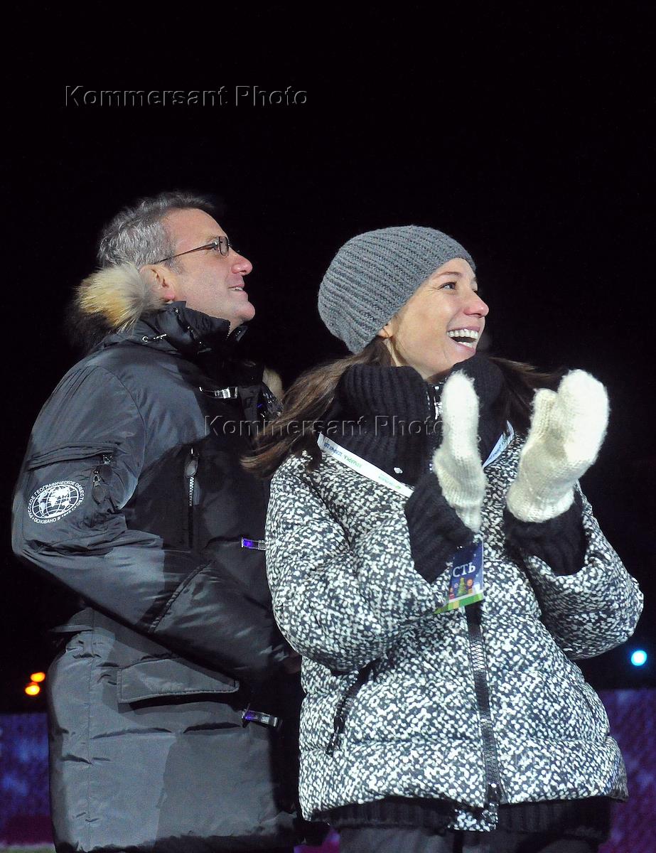 Президент "Сбербанка России" Герман Греф (слева) и актриса Чулпан Хаматова (справа) во время церемонии открытия благотворительного проекта – "Ярмарка Добрых Дел от Сбербанка" на площади Поклонной горы.