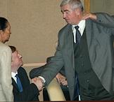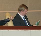 Руководитель фракции "Единство" в Государственной Думе России Владимир Пехтин разговаривает с депутатами в перерыве думского заседания.