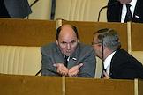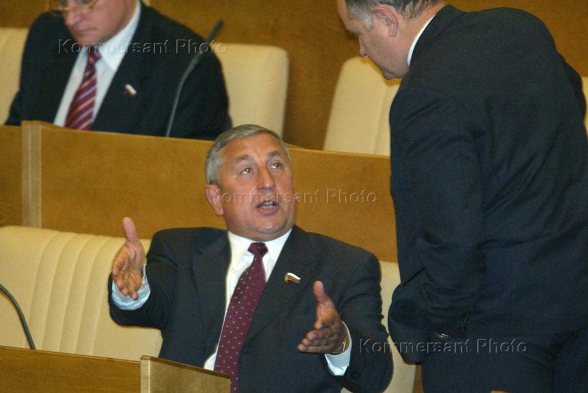 Председатель депутатской группы "Регионы России" (Союз независимых депутатов), член Совета Государственной Думы России Олег Морозов (слева) на очередном думском заседании.