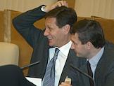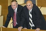 Заместитель председателя Комитета Государственной Думы России по вопросам местного самоуправления Георгий Леонтьев (слева) на очередном думском заседании.