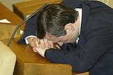 Депутат Государственной Думы России разгадывает сканворд в перерыве думского заседания.