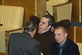 Член депутатской группы "Народный депутат" Государственной Думы России Олег Коргунов (в центре) разговаривает в перерыве думского заседания.