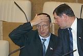 Член депутатской группы "Регионы России" (Союз независимых депутатов), председатель Комитета Государственной Думы по бюджету и налогам Александр Жуков (слева) на очередном думском заседании.
