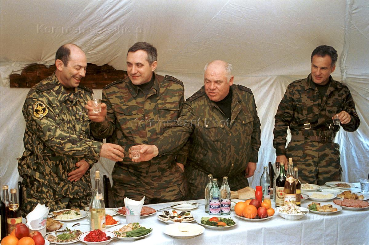 Командующий войсками Северо-Кавказского военного округа Виктор Казанцев курит после обсуждения итогов войсковой операции по взятию федеральными войсками Грозного.