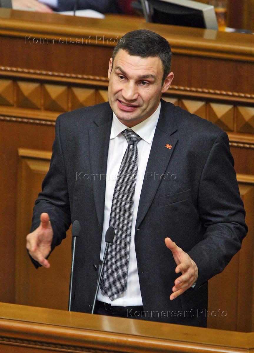 Народный депутат Верховной рады Украины VII созыва, лидер фракции Политической партии "УДАР (Украинский Демократический Альянс за Реформы) Виталия Кличко" Виталий Кличко во время заседания Верховной рады Украины (ВРУ).