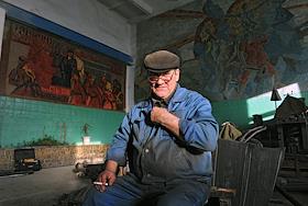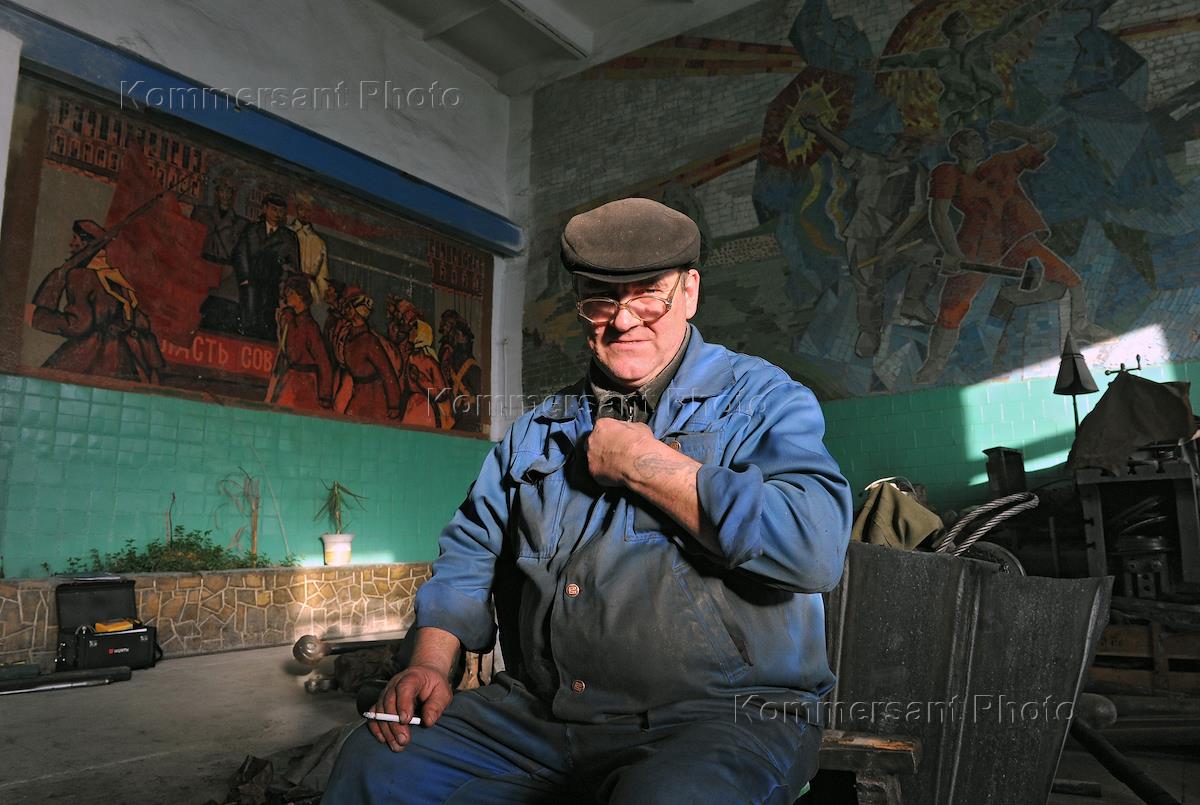 Саткинский щебеночный завод. Рабочий в ремонтной мастерской.