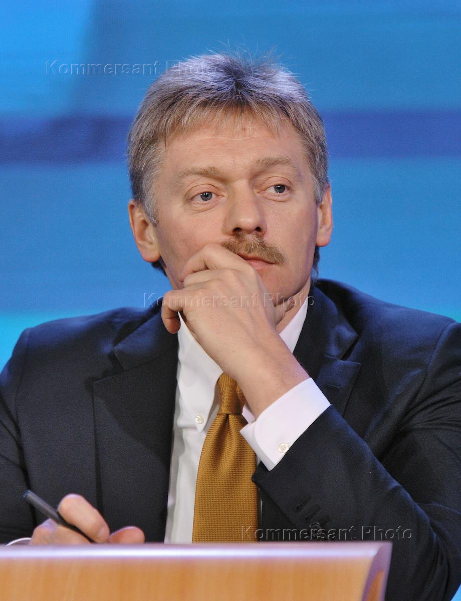 Заместитель руководителя администрации президента России, пресс-секретарь президента Дмитрий Песков во время проведения президентом России Владимиром Путиным пресс-конференции для журналистов в Центре международной торговли.