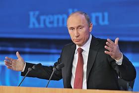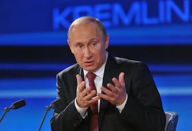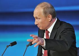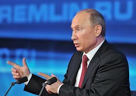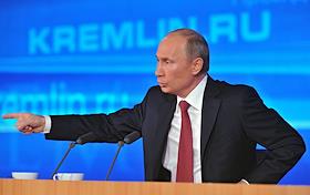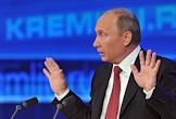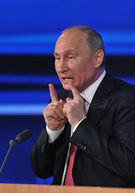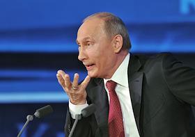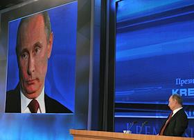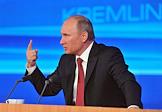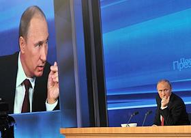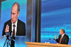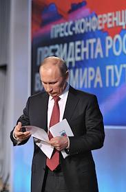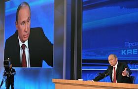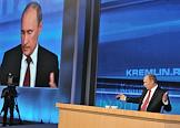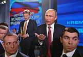 Президент России Владимир Путин во время большой ежегодной пресс-конференции в Центре международной торговли на Красной Пресне.