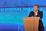 Заместитель руководителя администрации президента России, пресс-секретарь президента Дмитрий Песков во время проведения президентом России Владимиром Путиным пресс-конференции для журналистов в Центре международной торговли.