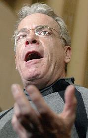 Author of libretto of "42nd street" musical Mark Brable sings during a dress rehearsal at Moscow Palace of Youth new stage.