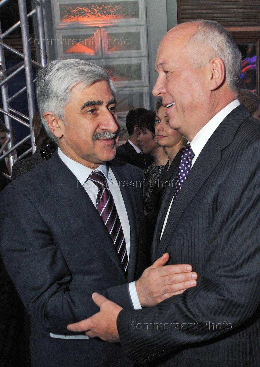 Президент Объединенной авиастроительной корпорации Михаил Погосян (слева) и генеральный директор корпорации "Ростехнологии" Сергей Чемезов (справа) на торжественном мероприятии, посвященном 5-летнему юбилею госкорпорации "Ростехнологий".